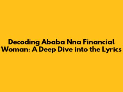 Hey music lovers! Ever found yourself completely captivated by a song? That's definitely how I felt when I first heard "Ababa Nna Financial Woman." The melody is infectious, the rhythm gets you moving, but the lyrics... they're a bit of a puzzle, right? Don't worry, you're not alone if you're scratching your head trying to figure out what it all means. So, let's dive headfirst into analyzing the lyrics of "Ababa Nna Financial Woman", and try to unpack the story they're telling. This song has layers, and understanding them can really enhance your appreciation for the music. We're going to explore the themes, the potential interpretations, and everything in between. Trust me, by the end of this, you'll have a much clearer picture of what the song is all about. Ready to get started?