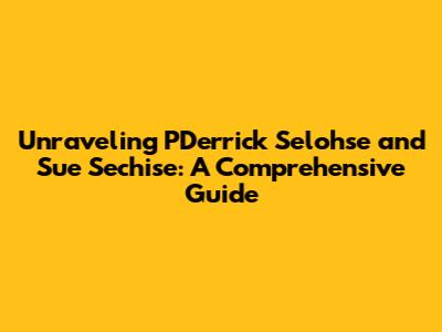 Hey guys! Let's dive deep into the world of PDerrick Selohse and Sue Sechise. You might be wondering, "What in the world are those?" Well, fear not! This guide is designed to unravel the mystery and provide you with a comprehensive understanding. We will explore their significance, potential impacts, and everything else in between. So, buckle up, because we're about to embark on a fascinating journey!