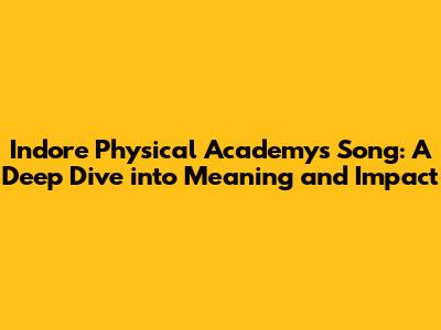 Hey everyone! Ever wondered about the pulse of motivation and camaraderie at the Indore Physical Academy? Well, look no further, because we're diving deep into their anthem! We'll explore the song's lyrics, the message it carries, and the overall impact it has on the academy and its members. Trust me, it's more than just a catchy tune; it's the heartbeat of a community.
