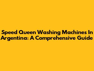 Speed Queen Washing Machines In Argentina: A Comprehensive Guide