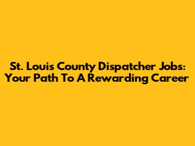 St. Louis County Dispatcher Jobs: Your Path To A Rewarding Career