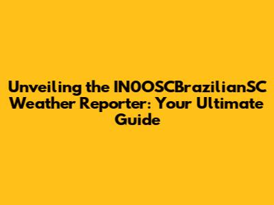 Hey there, weather enthusiasts! Ever wondered about the intricacies of weather reporting, especially when it comes to a specific region like IN0OSCBrazilianSC? Well, buckle up, because we're about to dive deep into the world of the IN0OSCBrazilianSC weather reporter, exploring what they do, the challenges they face, and why their role is so incredibly important. Get ready for an insightful journey that will transform the way you perceive your daily weather updates! Let's get started.