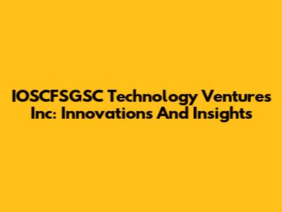 IOSCFSGSC Technology Ventures Inc: Innovations And Insights