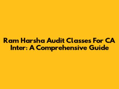 Ram Harsha Audit Classes For CA Inter: A Comprehensive Guide