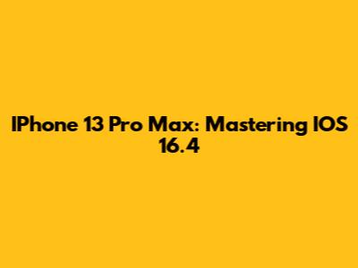 IPhone 13 Pro Max: Mastering IOS 16.4