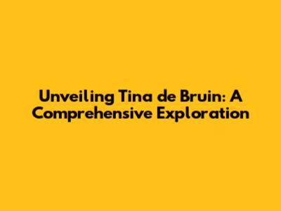Hey guys! Let's dive deep into the world of Tina de Bruin. This is going to be a fun journey, exploring everything we can about this fascinating person. We'll be looking at her background, achievements, and pretty much everything in between. Get ready to learn some cool stuff! It's always exciting to learn about someone new, especially when they have an interesting story to tell. So, buckle up, and let's get started. Throughout this article, we'll cover various aspects of Tina's life, from her early beginnings to her current endeavors. We'll aim to paint a comprehensive picture, allowing you to get a real sense of who she is and what she's all about. This isn't just about listing facts; it's about understanding the journey and the impact she's had. We'll examine her influences, her passions, and the things that make her tick. It's like a biographical deep dive, but hey, it's way more interesting than your average history lesson. Let's make this an engaging and informative exploration! Get ready to discover some unique insights and perspectives. You'll probably learn a thing or two, and hopefully, you'll find it as engaging as I do.