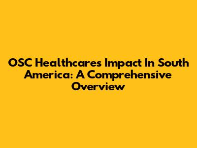 OSC Healthcare's Impact In South America: A Comprehensive Overview