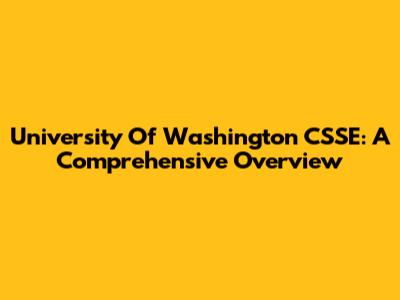 University Of Washington CSSE: A Comprehensive Overview