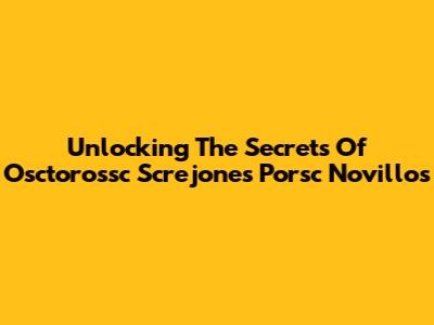 Unlocking The Secrets Of Osctorossc Screjones Porsc Novillos