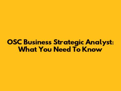 OSC Business Strategic Analyst: What You Need To Know