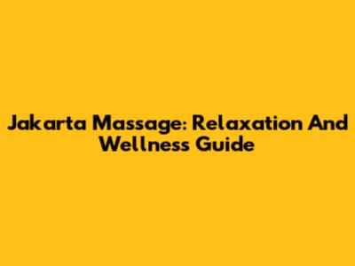 Jakarta Massage: Relaxation And Wellness Guide