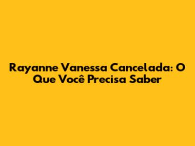 Rayanne Vanessa Cancelada: O Que Você Precisa Saber