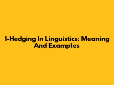 I-Hedging In Linguistics: Meaning And Examples