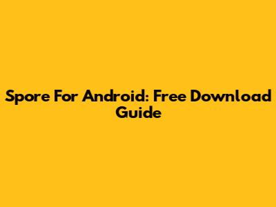 Spore For Android: Free Download Guide