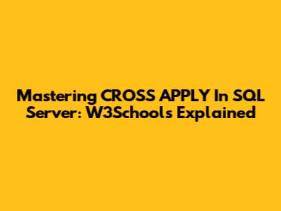 Mastering CROSS APPLY In SQL Server: W3Schools Explained