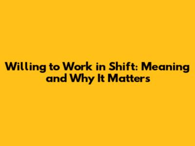 Understanding what it means to be willing to work in shifts is super important, especially when you're on the hunt for a new job or trying to figure out your career path. Basically, it's about being open to working different schedules – think mornings, afternoons, nights, weekends, and even holidays. Companies often need people at all hours to keep things running smoothly, so being flexible with your availability can really make you stand out. When you see those words in a job description, it’s a signal that the role isn’t a typical 9-to-5 gig. It's about ensuring that operations keep humming around the clock, and that’s where you come in. Embracing this kind of work arrangement means you're ready to adapt to schedules that might change regularly, which shows employers you’re reliable and dedicated. You might be wondering why companies place such emphasis on this. Well, many industries, like healthcare, manufacturing, hospitality, and logistics, operate 24/7. This continuous operation demands a workforce willing to cover all hours of the day and night. Your willingness to step into different shifts ensures that these critical services are always available, contributing to the overall efficiency and success of the organization. From a personal perspective, being open to shift work can offer numerous advantages. It can provide opportunities for higher pay, as night and weekend shifts often come with premiums. It can also offer more flexibility in your personal life, allowing you to schedule appointments or pursue hobbies during off-peak hours. Moreover, it demonstrates a strong work ethic and adaptability, qualities highly valued by employers. By understanding and embracing the concept of being willing to work in shifts, you not only enhance your career prospects but also contribute to the smooth functioning of essential services. So, next time you see that phrase in a job posting, remember it's an invitation to be a crucial part of a dynamic and always-on workforce.