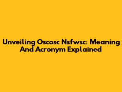 Unveiling Oscosc Nsfwsc: Meaning And Acronym Explained