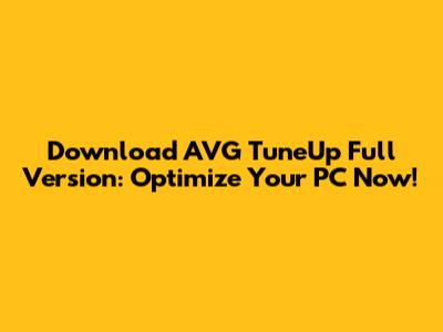 Download AVG TuneUp Full Version: Optimize Your PC Now!