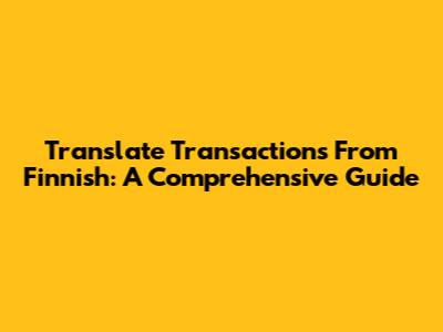 Translate Transactions From Finnish: A Comprehensive Guide