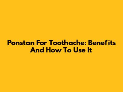 Ponstan For Toothache: Benefits And How To Use It