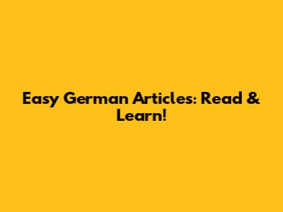 Easy German Articles: Read & Learn!